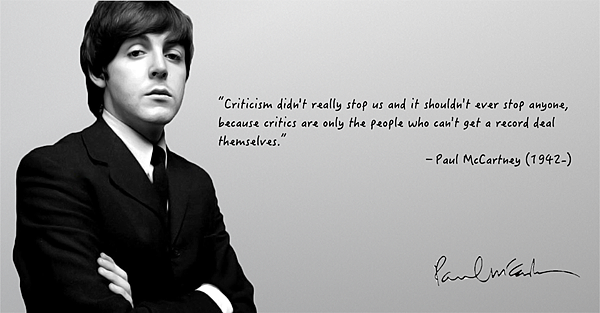 “Criticism didn't really stop us and it shouldn't ever stop anyone, because critics are only the people who can't get a record deal themselves.”